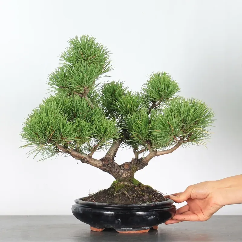 The mugo pine bonsai, also known as mountain pine, is very easy to grow. It naturally produces small needles and densifies very well, making it possible to create extraordinary bonsai trees. We've been growing it in our nursery for 30 years, and it's a very interesting pine to work with and train.