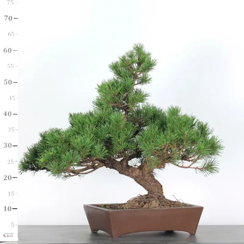 The mugo pine bonsai, also known as mountain pine, is very easy to grow. It naturally produces small needles and densifies very well, making it possible to create extraordinary bonsai trees. We've been growing it in our nursery for 30 years, and it's a very interesting pine to work with and train.