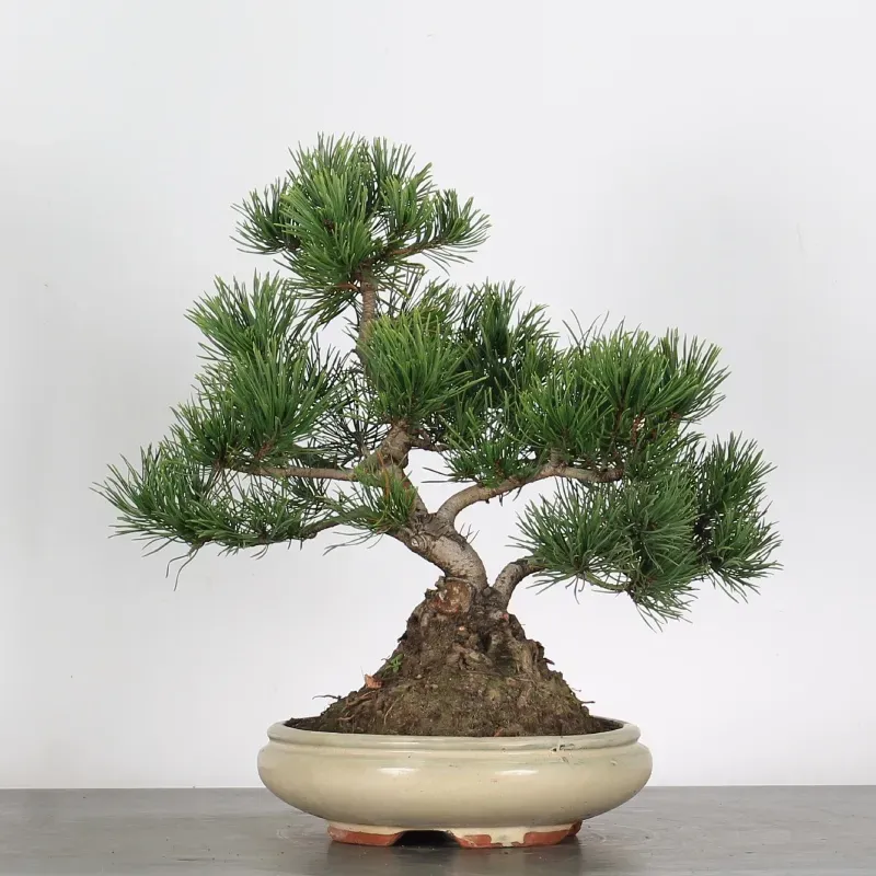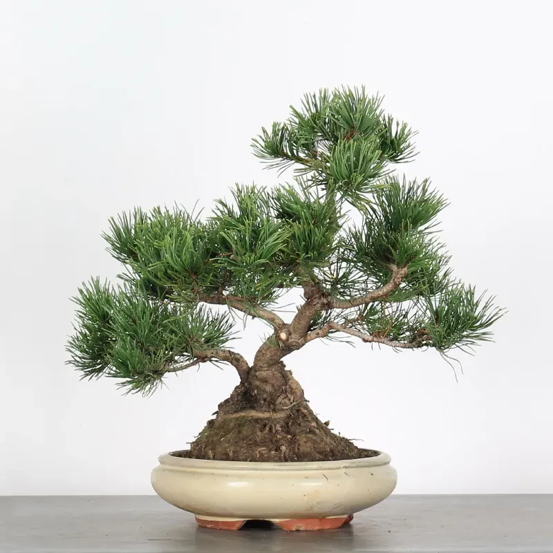 Here is a variety of pine that deserves more attention than the Asian varieties. It grows naturally in mountainous and rocky areas and also thrives in plains and pots! It grows slowly, but we have been growing it at the nursery for a very long time. It makes small needles of a beautiful green and easily rebuds back to form beautiful plateaus.