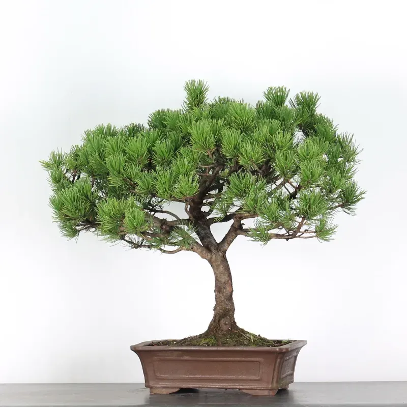 The mugo pine bonsai, also known as mountain pine, is very easy to grow. It naturally produces small needles and densifies very well, making it possible to create extraordinary bonsai trees. We've been growing it in our nursery for 30 years, and it's a very interesting pine to work with and train.