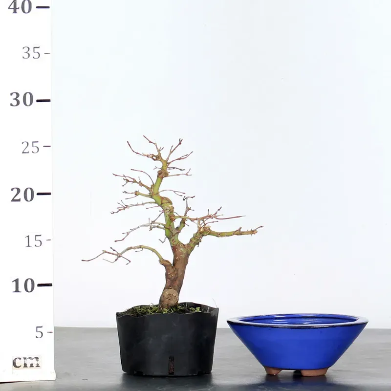 Prebonsai Japanese Maple "palmatum", a so-called "stock" variety, renowned for its vigor, hardiness, and frequent use as rootstock for more delicate cultivars. An ideal variety for beginners looking to start bonsai thanks to its robustness and steady growth. Its pinkish-green foliage in spring transforms to a vibrant red in autumn, offering a unique seasonal display.