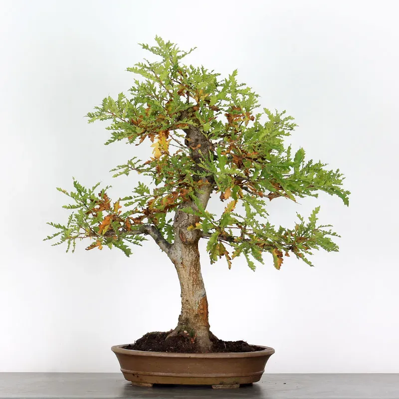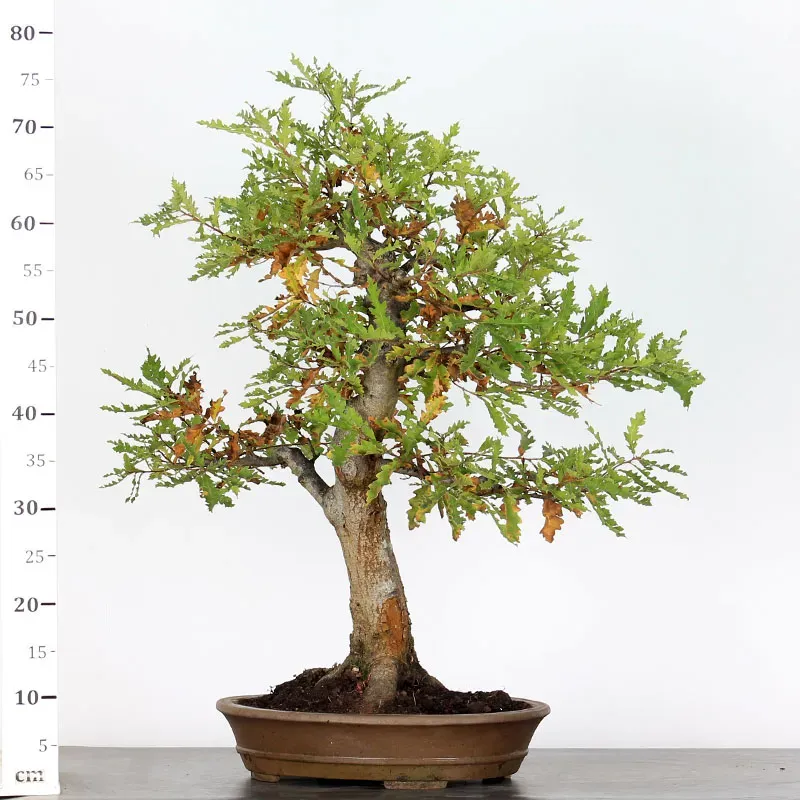 The oak bonsai is a strong tree with remarkable bark. We've been growing them in nurseries for 40 years. It's the oak of our countryside and forests, and contrary to popular belief, it's entirely possible to make magnificent bonsai from it. Over the years, it develops a massive trunk with strong structural branches that evoke the full power of this tree. It is easy to grow.