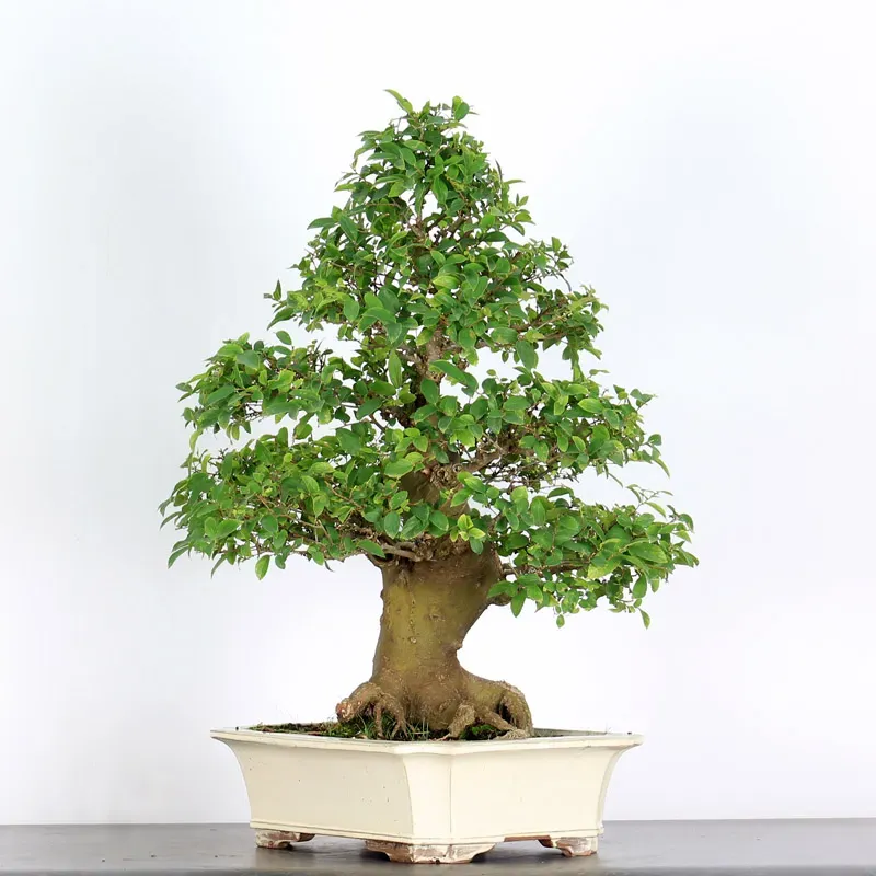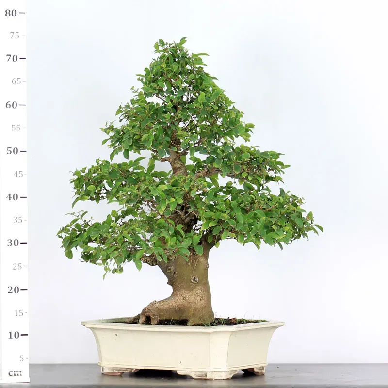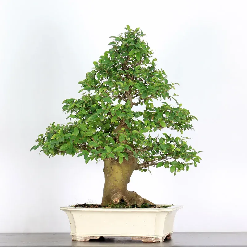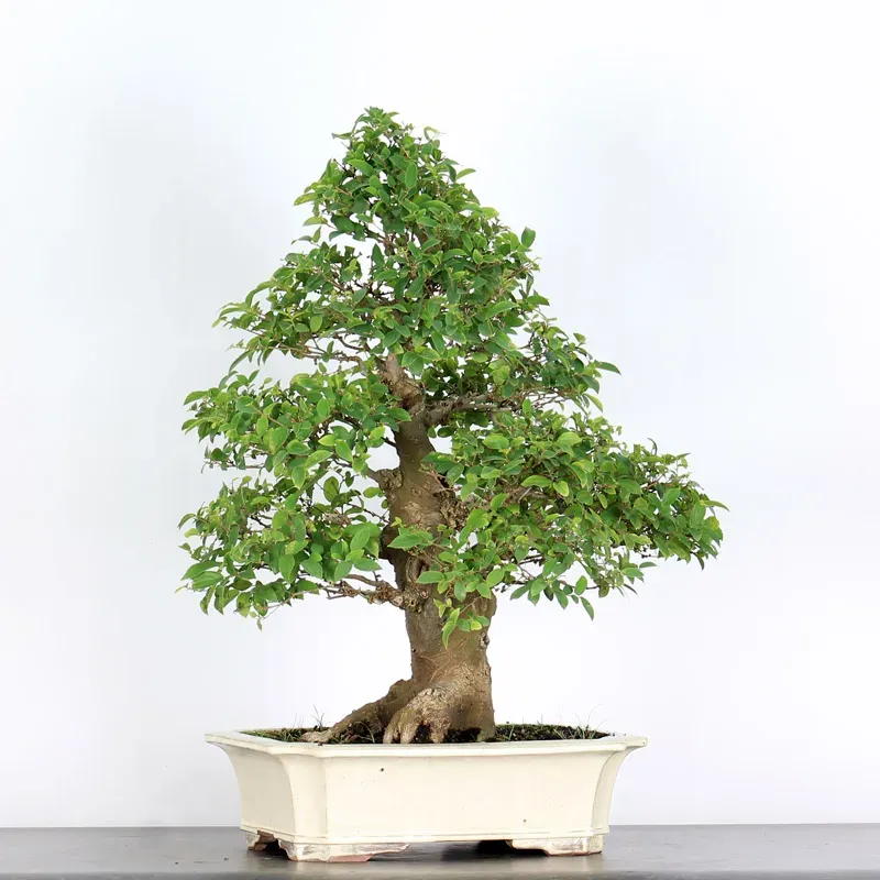 The Provence Hackberry bonsai "Celtis australis" is distinguished by its majestic and massive trunk, textured bark, and foliage of small oval leaves, adapted to a beautiful, fine branching. Essentially deciduous, it offers remarkable visual interest in every season. Its ease of cultivation and great resilience make it an ideal choice for both beginners and advanced bonsai practitioners.