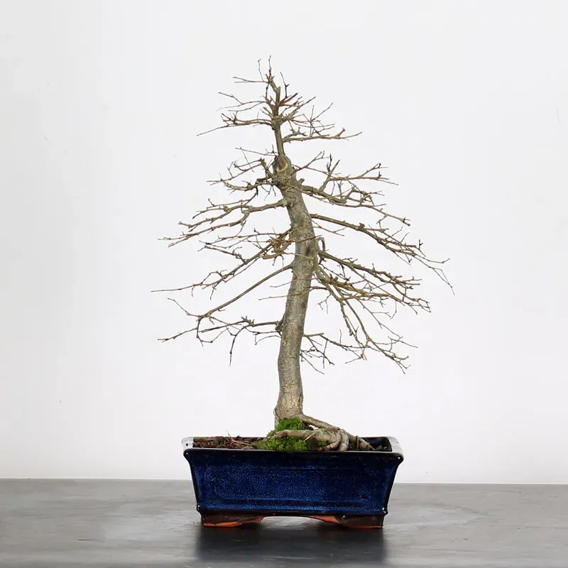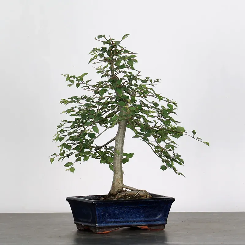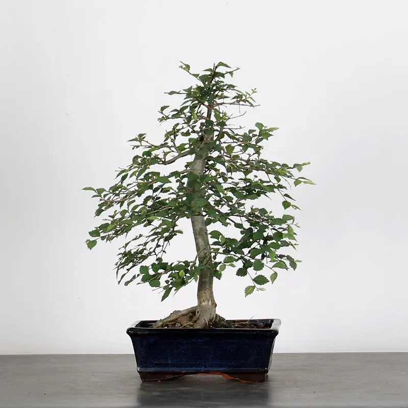 The Siberian elm "Ulmus pumila" is a bonsai prized for its hardiness and vigorous growth. It is distinguished by its small, serrated leaves, well-proportioned for bonsai, and by its trunk, which develops pronounced markings with age. Highly resistant to cold and repeated pruning, it is suitable for both beginners and experienced bonsai enthusiasts.