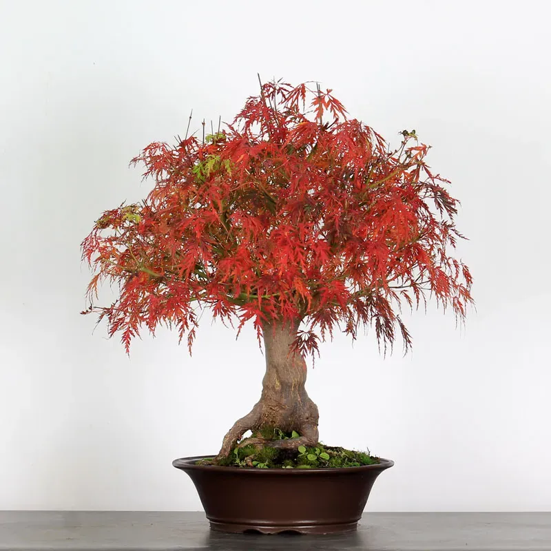 The Seiryu Japanese Maple, Acer palmatum Seiryu, is a magnificent bonsai tree with luminous green foliage. It has a lacy green appearance, turning golden yellow and then orange in autumn, giving it a special charm. Elegant and luminous, year after year it becomes a monument to your bonsai collection.