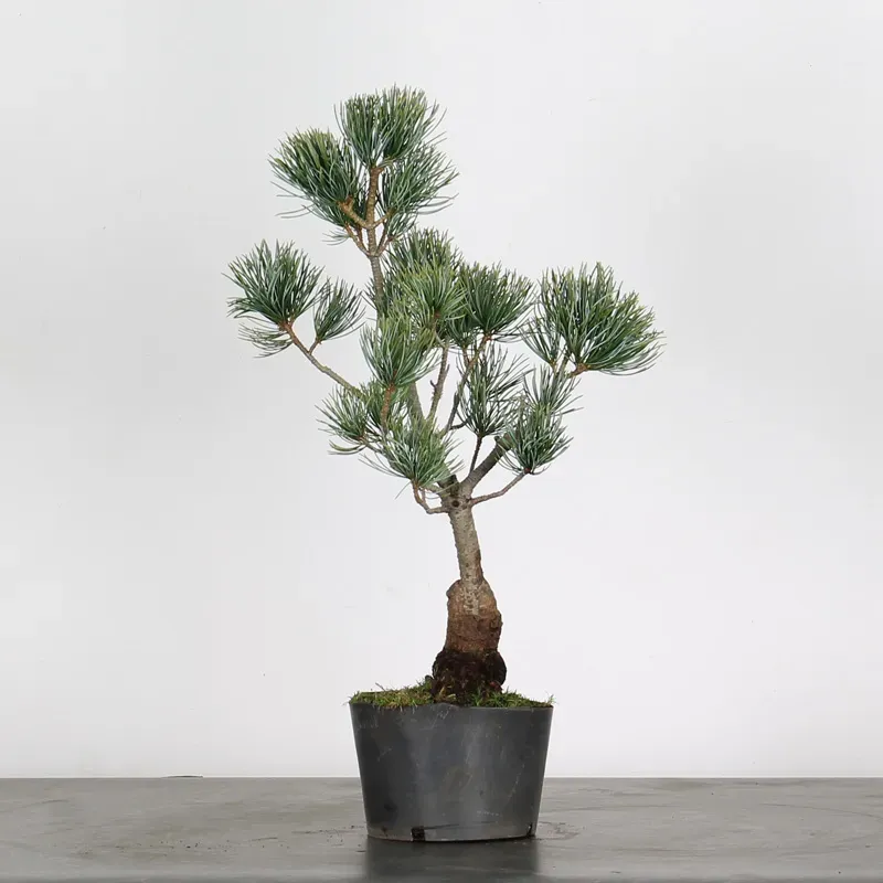 The Japanese white pine bonsai "pinus pentaphylla" is a popular tree because of its fine needles sheathed by five, green/blue colours, it can be shaped to present graceful movements of branches and an elegant trunk, it has rather a slow growth.