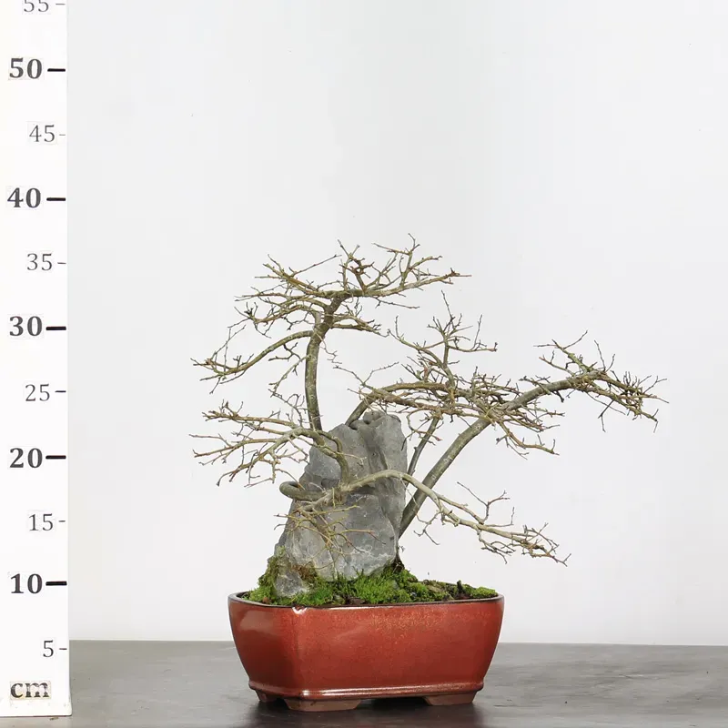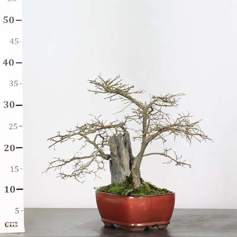 The Siberian elm "Ulmus pumila" is a bonsai prized for its hardiness and vigorous growth. It is distinguished by its small, serrated leaves, well-proportioned for bonsai, and by its trunk, which develops pronounced markings with age. Highly resistant to cold and repeated pruning, it is suitable for both beginners and experienced bonsai enthusiasts.