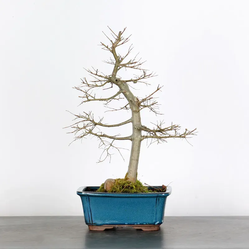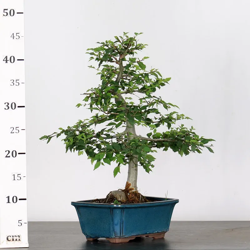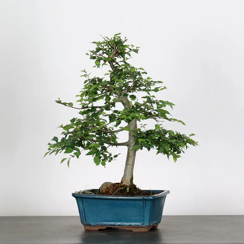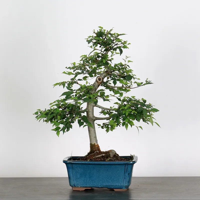 The Siberian elm "Ulmus pumila" is a bonsai prized for its hardiness and vigorous growth. It is distinguished by its small, serrated leaves, well-proportioned for bonsai, and by its trunk, which develops pronounced markings with age. Highly resistant to cold and repeated pruning, it is suitable for both beginners and experienced bonsai enthusiasts.