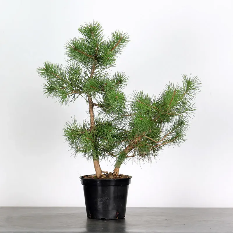 The Scots Pine bonsai "Pinus sylvestris" is a majestic and robust conifer, renowned for its longevity and remarkable adaptability, although it prefers mountain climates. Ideal for those wishing to shape their own bonsai, it offers an excellent working base thanks to its still-flexible wood, slender trunk, and laminated bark that turns ochre-red to russet over time, allowing for easy wiring and shaping. Versatile and durable, it is suitable for various styles and effectively supports the tree's development over time.