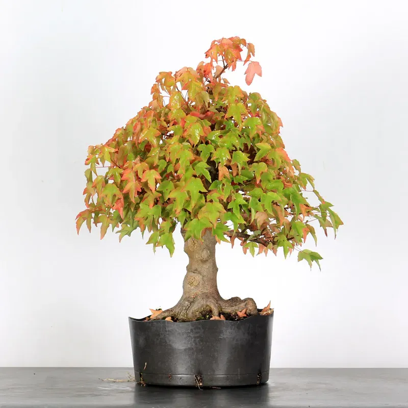 It owes its name to the shape of its three-lobed leaves. It is a very robust tree that can grow up to 10 meters tall when grown in the ground. It tolerates severe pruning and withstands heat better than palmatum. In short, if you are looking for a bonsai maple that is easy to grow and that quickly gives an interesting result, then the Burger maple is for you!