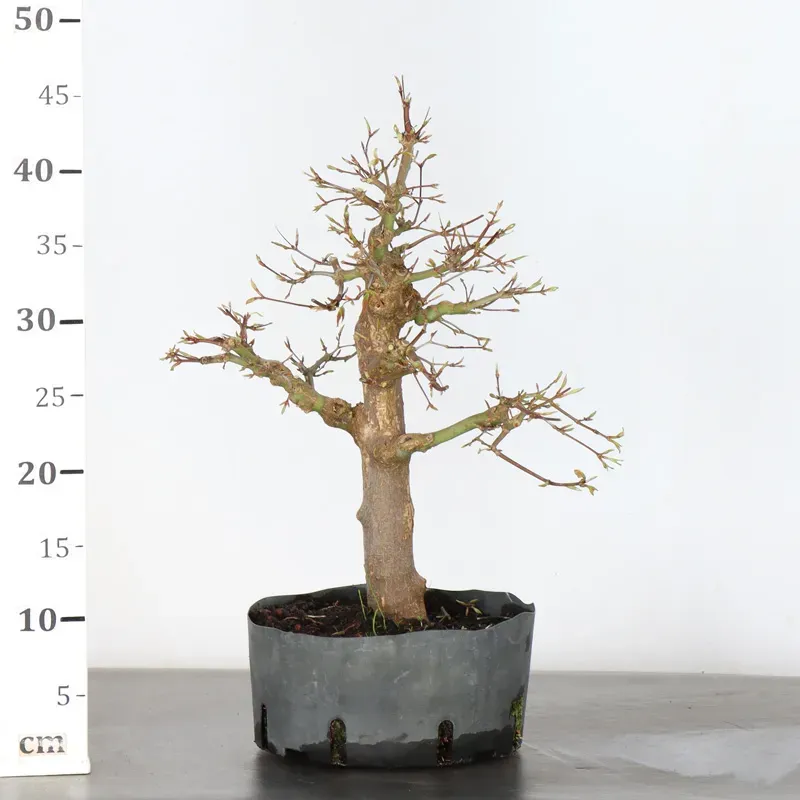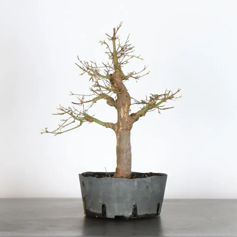 Maple likes cool soils with a good share of organic matter. In the nursery, we use agricultural potting soil composed of black peat, blond peat, eco-aged, topsoil, horse manure, pozzolana.  During the next repotting, which is done about every 2/3 years at the beginning of March, you can mix more draining substrate such as: akadama, pumice, kiryu... Just be careful not to disturb the root bread, don't destroy the whole root ball