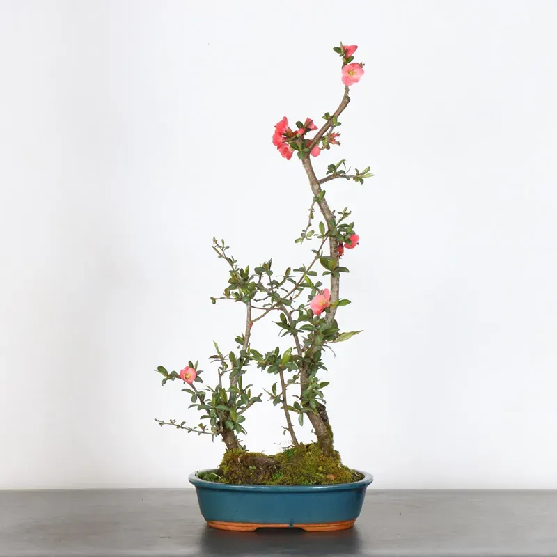 The Japanese quince "Chaenomeles Japonica" is a much-loved bonsai for its magnificent little pink, red or white flowers, which come into bloom early, from February onwards.