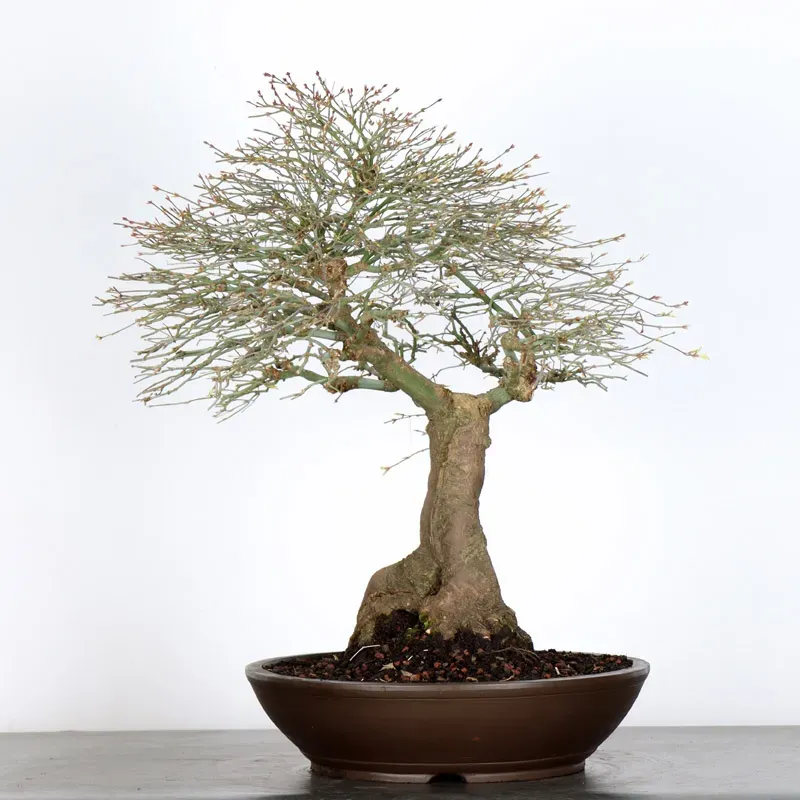 The Kiyohime Maple is undoubtedly the variety we appreciate most among bonsai maples. Its natural ball shape and rapid densification make it a very rewarding bonsai, as it immediately looks like a dwarf tree in its pot.