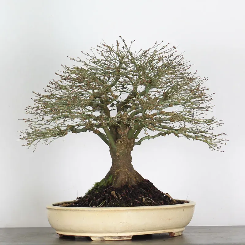 The Kiyohime Maple is undoubtedly the variety we appreciate most among bonsai maples. Its natural ball shape and rapid densification make it a very rewarding bonsai, as it immediately looks like a dwarf tree in its pot. It goes from orange/green in spring, all green in summer and red/yellow in autumn...
