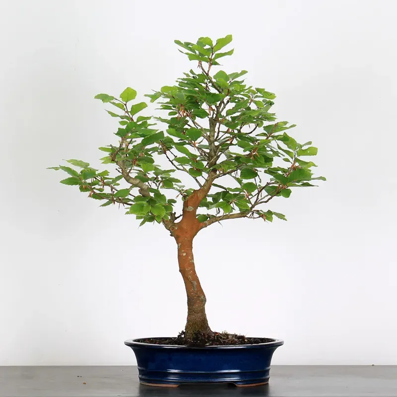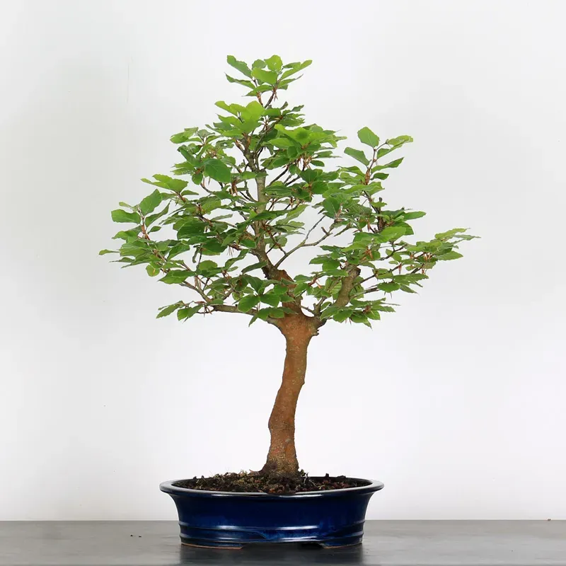 The Beech is a deciduous bonsai tree that thrives in the lower mountains and in the countryside. Its greyish bark becomes rougher as it ages. Its foliage is marcescent, meaning that it remains attached to the tree even after the leaves have died in autumn and often until the spring swell of buds causes it to fall.