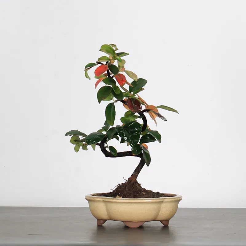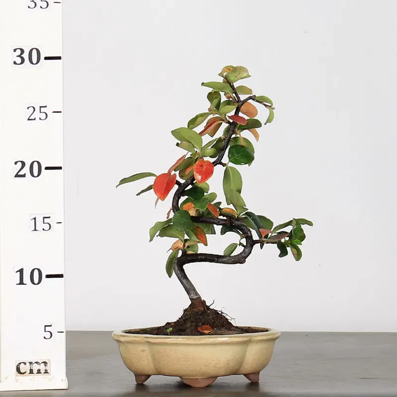 The quince tree "Cydonia oblonga" is a small fruit tree ideal for bonsai. It is easy to train and wire, making it perfect for beginners. Its foliage turns beautiful red and orange hues in the fall, and with good care, it can flower and produce beautiful, fragrant fruit after a few years.
