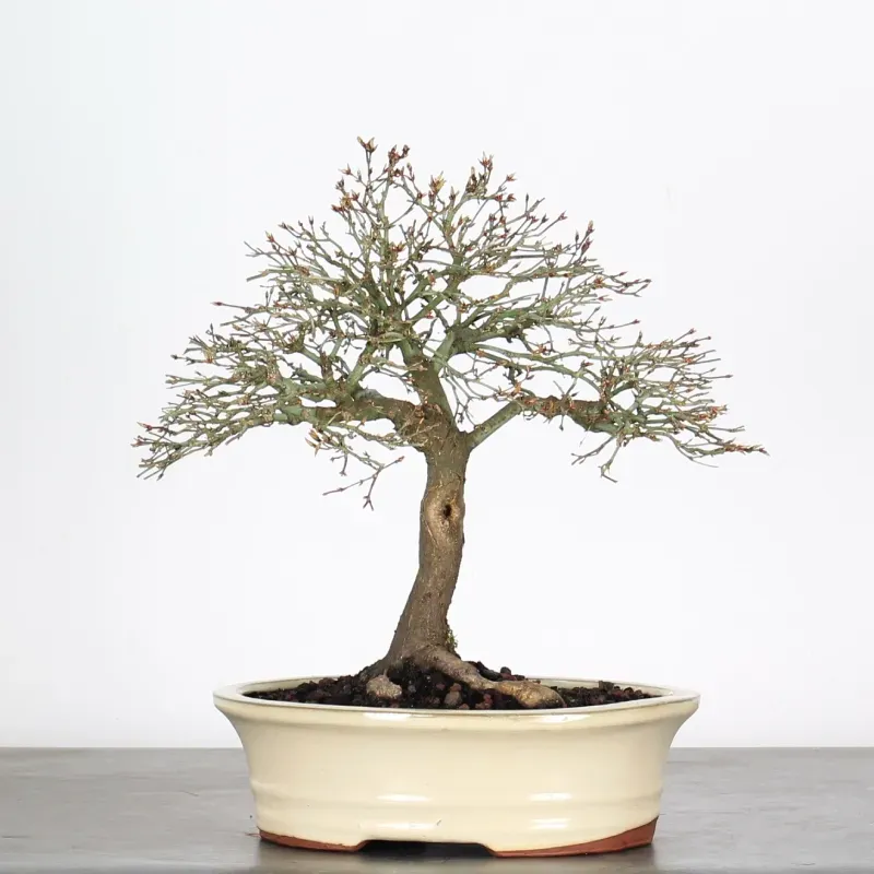 The Kiyohime Maple is certainly the variety that we appreciate the most among bonsai maples. Its natural ball-shaped habit and rapid densification make it a very rewarding bonsai as it immediately has the appearance of a dwarf tree in its pot.