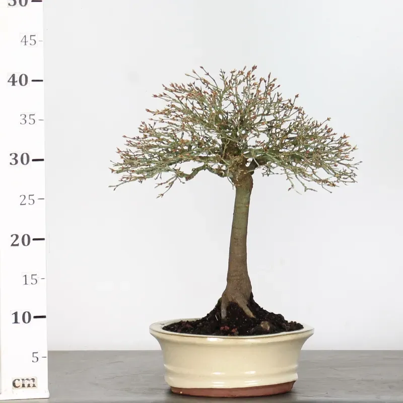 The Kiyohime Maple is certainly the variety that we appreciate the most among bonsai maples. Its natural ball-shaped habit and rapid densification make it a very rewarding bonsai as it immediately has the appearance of a dwarf tree in its pot.