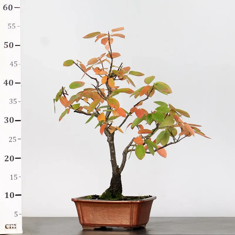 The Serviceberry bonsai marks the arrival of sunny days with its spring blooms. In summer, it develops an edible blue-black fruit, called "askatoon". In autumn, these pretty leaves turn a fiery red color.