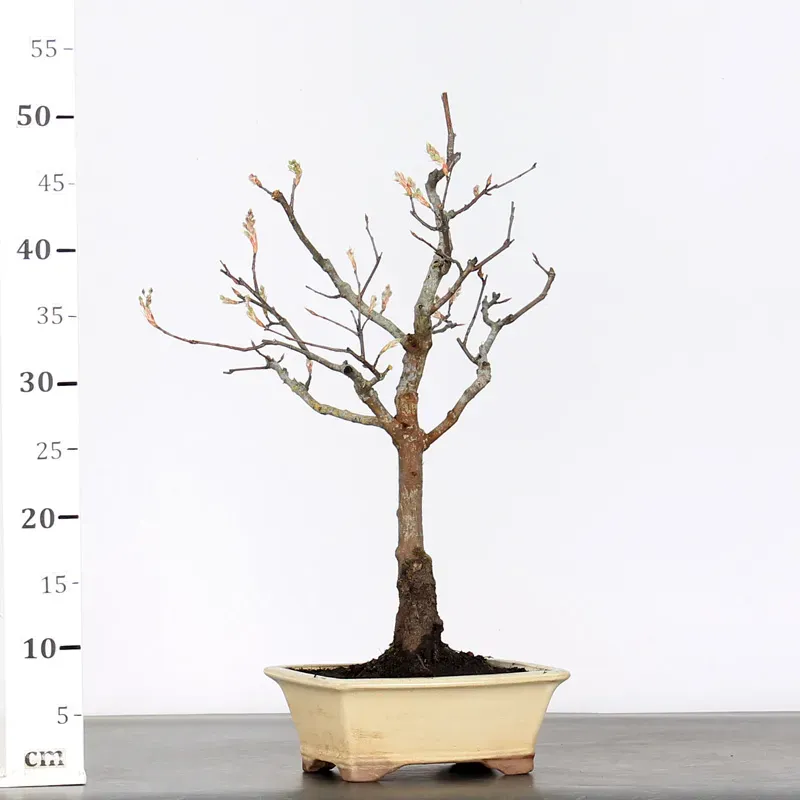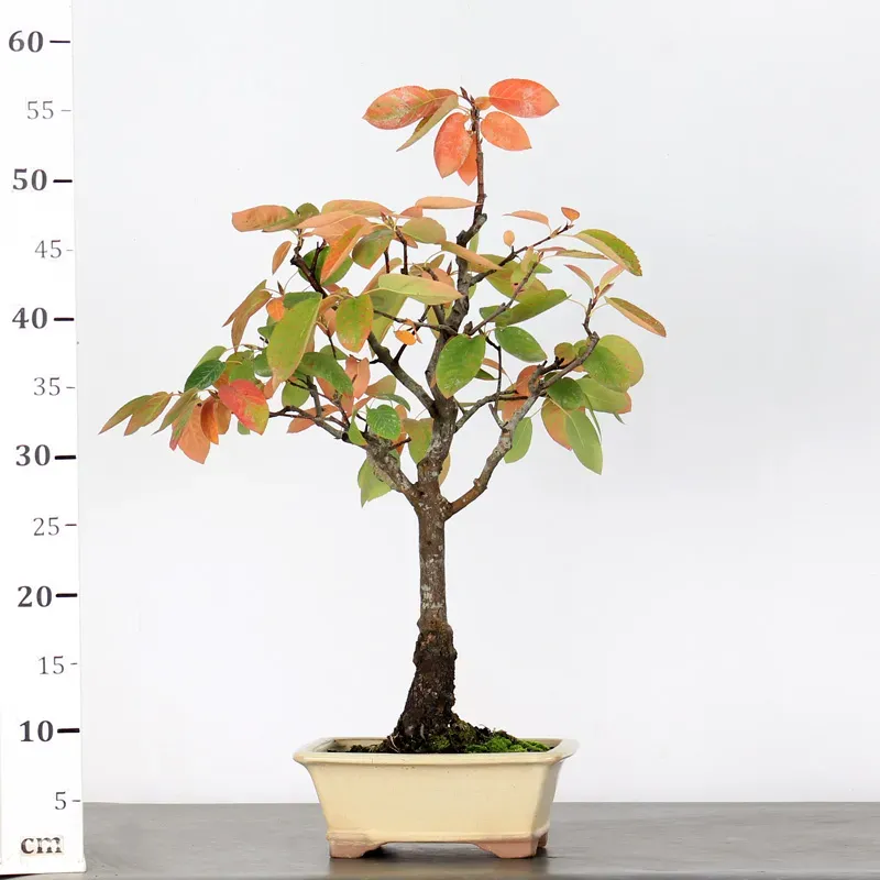 The Serviceberry bonsai marks the arrival of warmer weather with its spring blooms. In the summer, it produces an edible blue-black fruit called "amélanco." In the fall, its pretty leaves turn a fiery red.