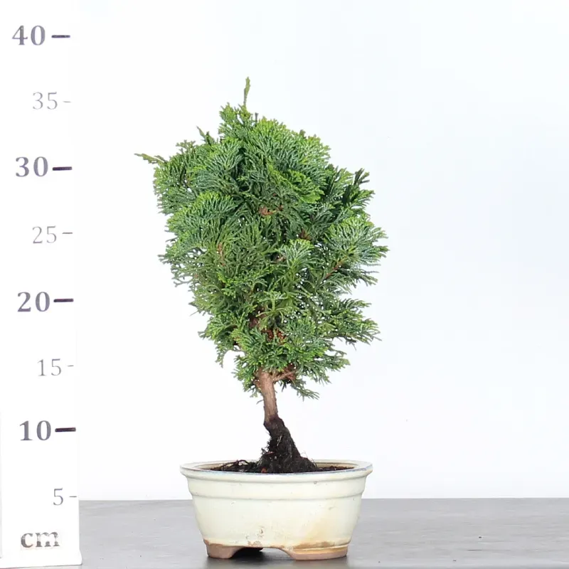 The Japanese cypress bonsai – Chamaecyparis obtusa 'Nana Gracilis' – is a hardy conifer with dense, scaly foliage, highly prized for its distinctive shape and Japanese-inspired elegance. Its flexible wood lends itself well to wiring, making it an excellent bonsai tree. Evergreen, it retains its green foliage year-round and is resistant to cold.