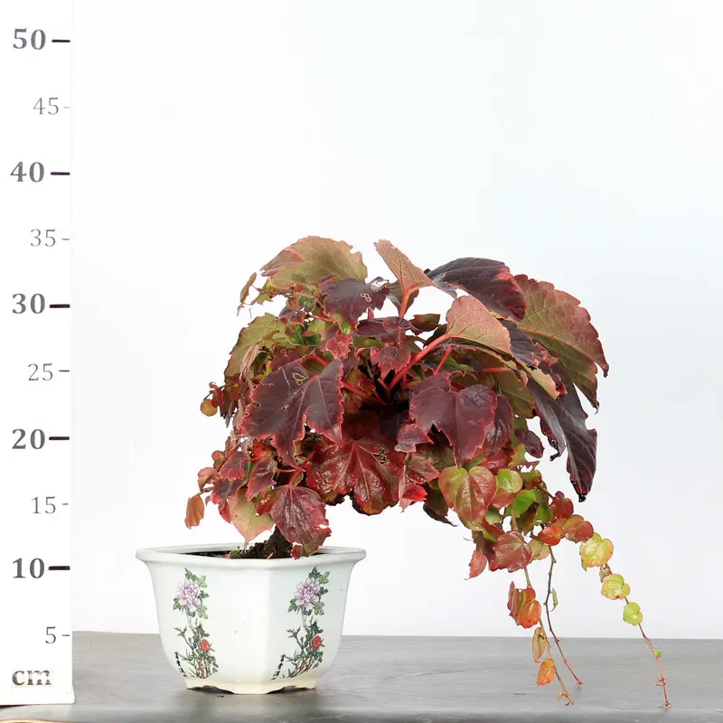 The Virginia creeper "Parthenocissus tricuspidata" is a climbing plant prized for its beauty and ability to create dense cover on walls or trellises. It can also be grown as a bonsai, offering a miniature version of this attractive climbing plant.