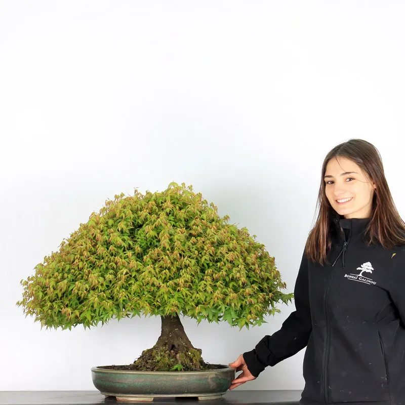The Kiyohime Maple is undoubtedly the variety we appreciate most among bonsai maples. Its natural ball shape and rapid densification make it a very rewarding bonsai, as it immediately looks like a dwarf tree in its pot. It goes from orange/green in spring, all green in summer and red/yellow in autumn...