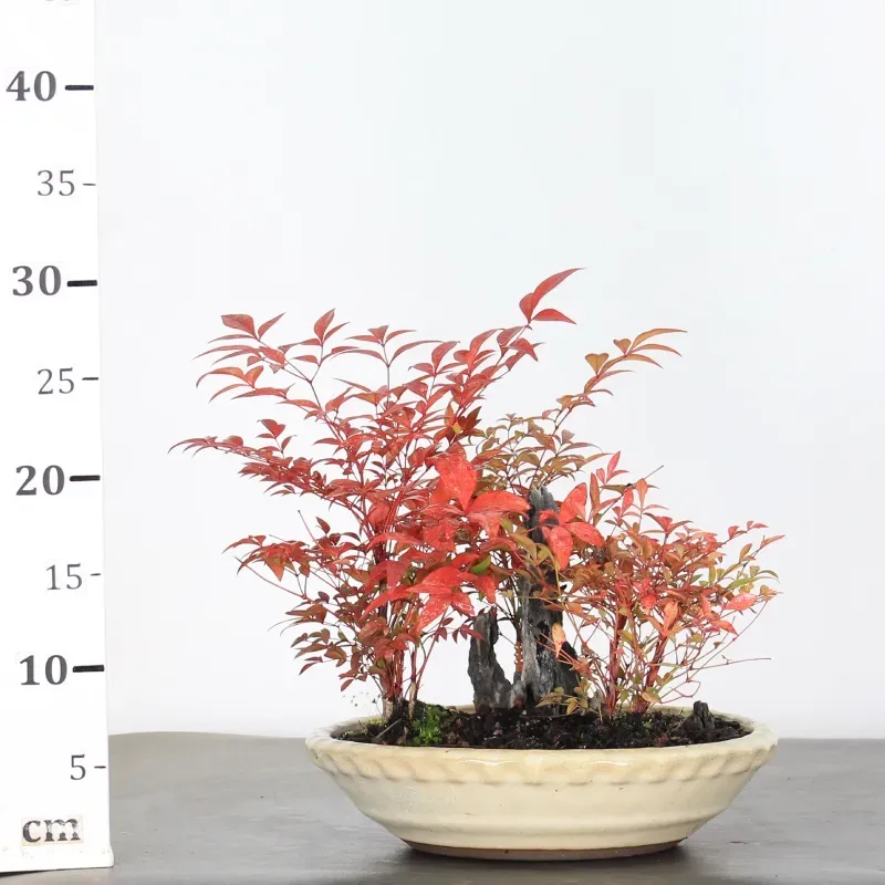 Place it outdoors year-round in a spot with alternating sun and shade, sheltered from cold or drying winds. Sacred bamboo is suitable for all climates thanks to its hardiness. If the climate is too windy or too cold (below -12°C), protect it by wrapping the pot with horticultural fleece or fiberglass to protect its roots from frost.