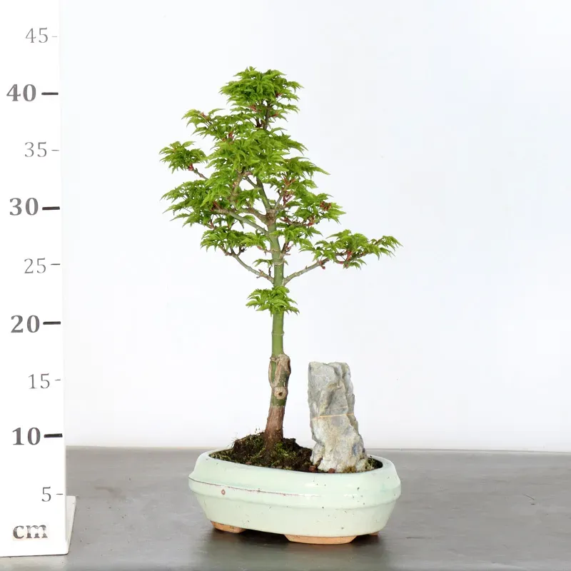 The Shishigashira Bonsai Maple offers you its crisp, wavy foliage in changing colours. Its name "Shishigashira" means "Lion's Mane" a reference to its highly original foliage. In spring, the foliage is a soft green before taking on a deeper hue in summer. In autumn, you can enjoy more vibrant colours ranging from yellow to red and various shades of orange. "Shishigashira" is a dwarf, slow-growing variety. As it naturally has small internodes and leaves, it is very suitable for small bonsai trees, but not only.