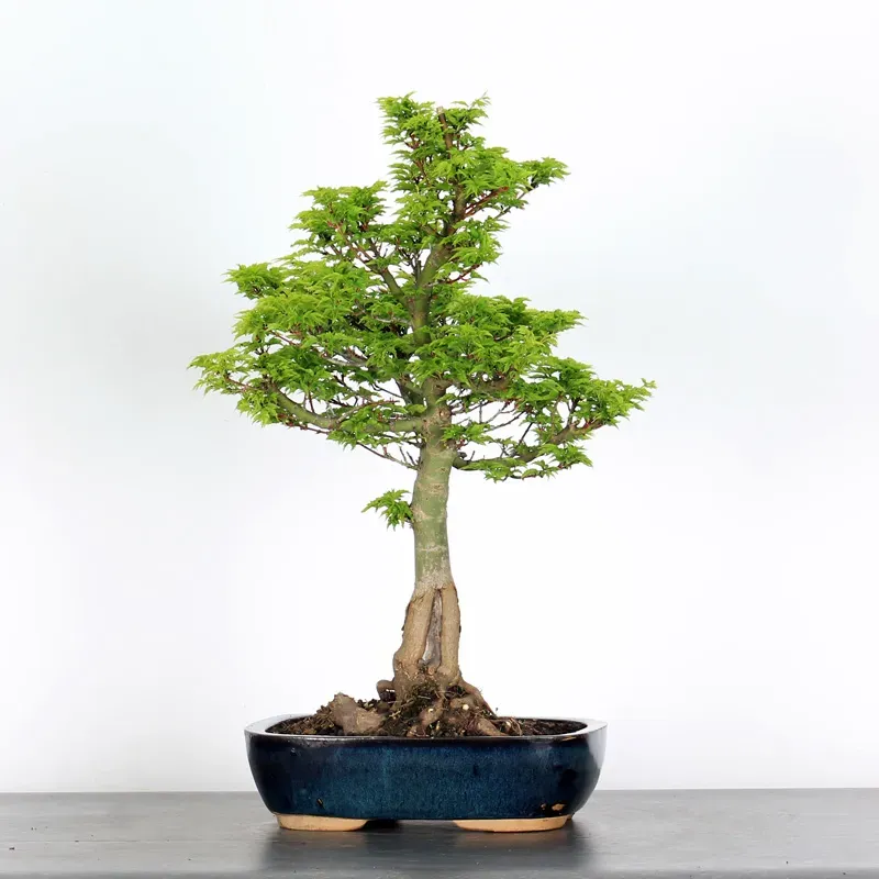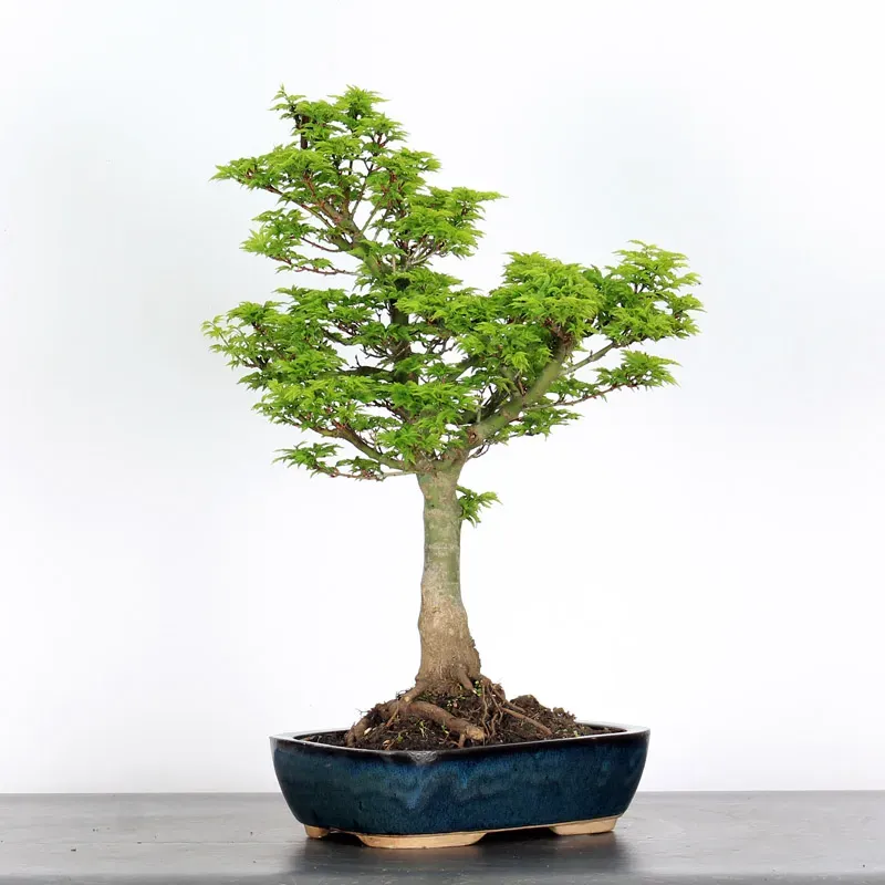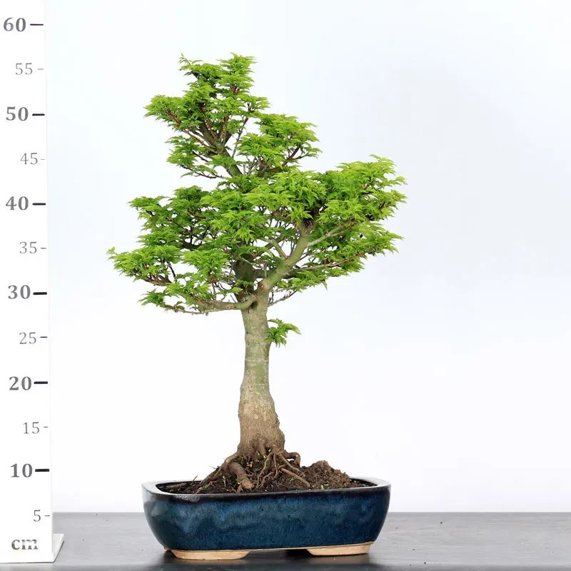 The Shishigashira Maple offers you its crisp, wavy foliage in changing colours. Its name "Shishigashira" means "Lion's Mane" a reference to its highly original foliage. In spring, the foliage is a soft green before taking on a deeper hue in summer. In autumn, you can enjoy more vibrant colours ranging from yellow to red and various shades of orange. "Shishigashira" is a dwarf, slow-growing variety. As it naturally has small internodes and leaves, it is very suitable for small bonsai trees, but not only.