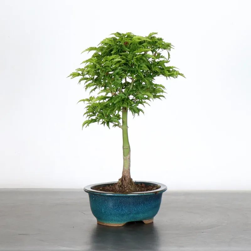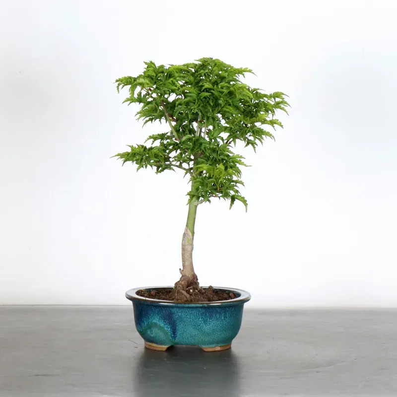 The Shishigashira Maple offers you its crisp, wavy foliage in changing colours. Its name "Shishigashira" means "Lion's Mane" a reference to its highly original foliage. In spring, the foliage is a soft green before taking on a deeper hue in summer. In autumn, you can enjoy more vibrant colours ranging from yellow to red and various shades of orange. "Shishigashira" is a dwarf, slow-growing variety. As it naturally has small internodes and leaves, it is very suitable for small bonsai trees, but not only.
