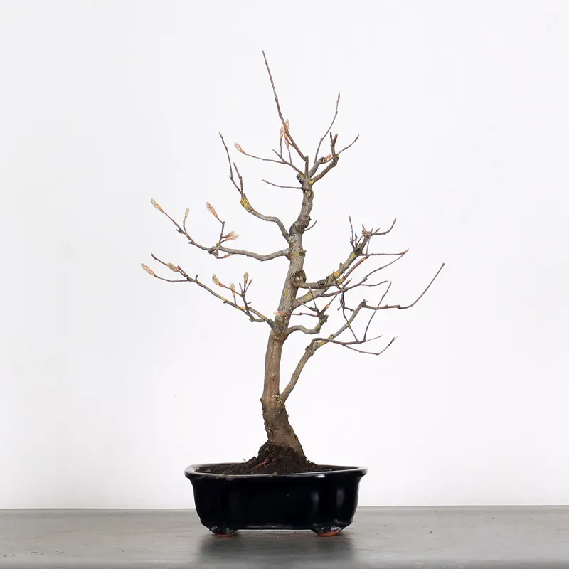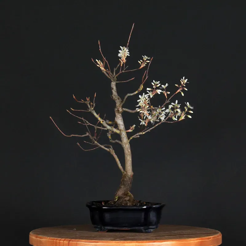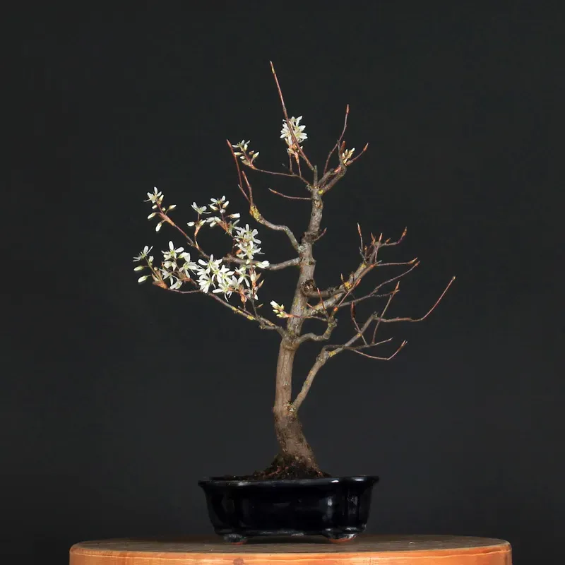 The Serviceberry bonsai marks the arrival of sunny days with its spring blooms. In summer, it develops an edible blue-black fruit, called "askatoon". In autumn, these pretty leaves turn a fiery red color.