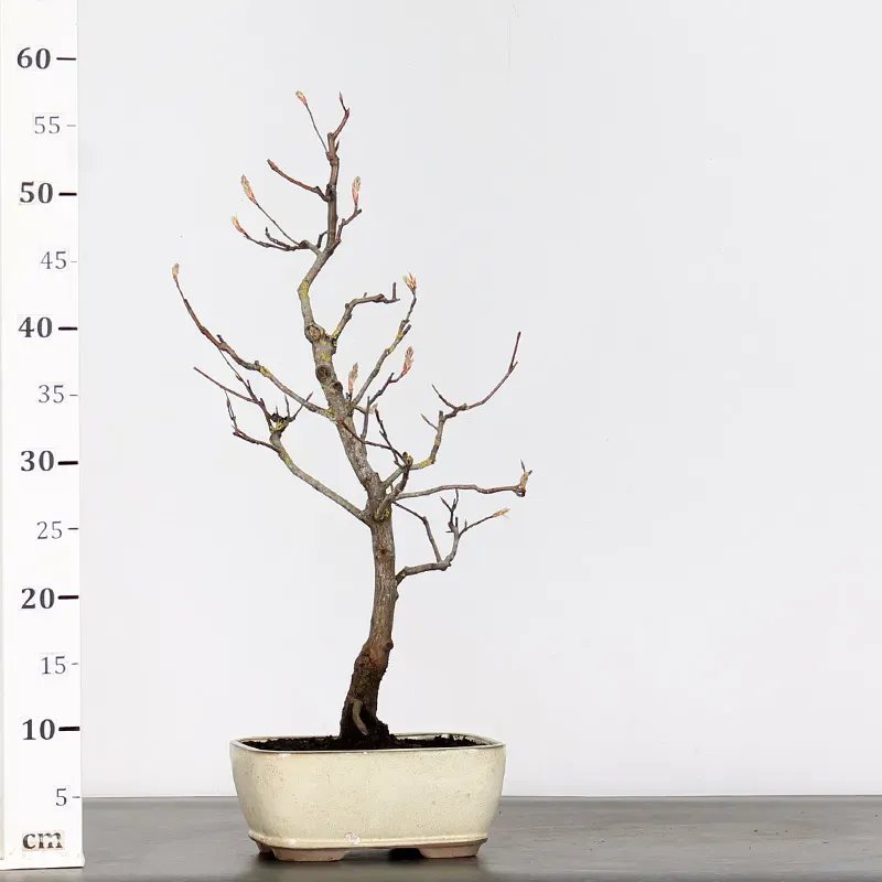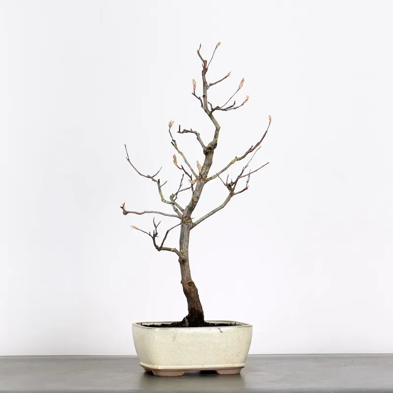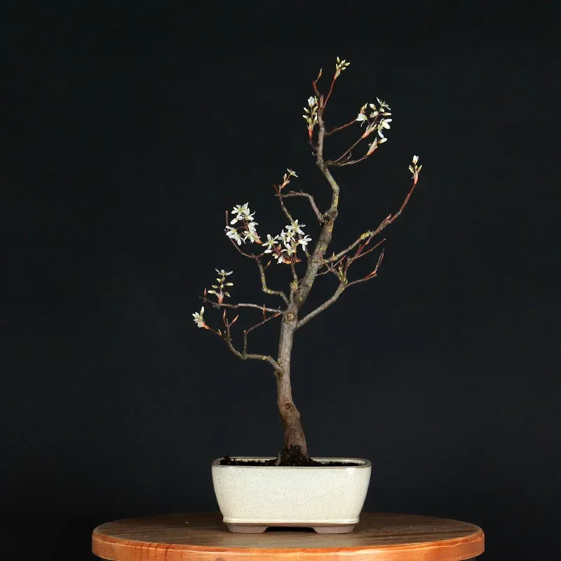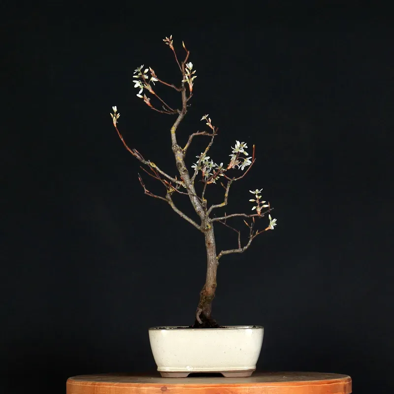 The Serviceberry bonsai marks the arrival of sunny days with its spring blooms. In summer, it develops an edible blue-black fruit, called "askatoon". In autumn, these pretty leaves turn a fiery red color.
