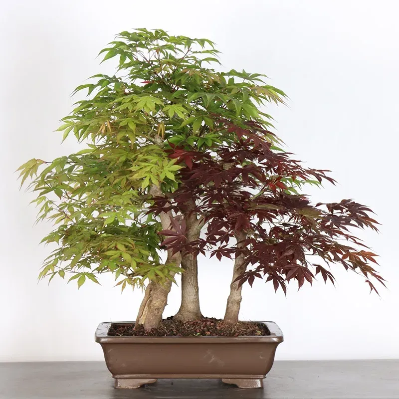 The Japanese Maple "Acer palmatum Atropurpureum" boasts vibrant purple-red foliage throughout the season, transitioning from a light purple-red in spring, to a darker shade in summer, and finally to a brilliant carmine red in autumn. Its distinctive purple hue and cultivation techniques will add diversity to your collection.