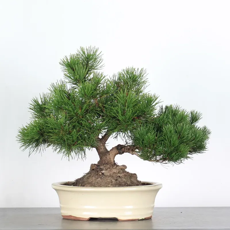 The mugo pine bonsai , also known as mountain pine, is very easy to grow. It naturally produces small needles and densifies very well, making it possible to create extraordinary bonsai trees. We've been growing it in our nursery for 30 years, and it's a very interesting pine to work with and train.