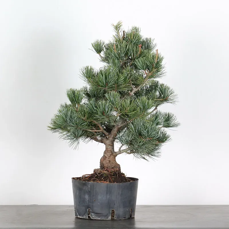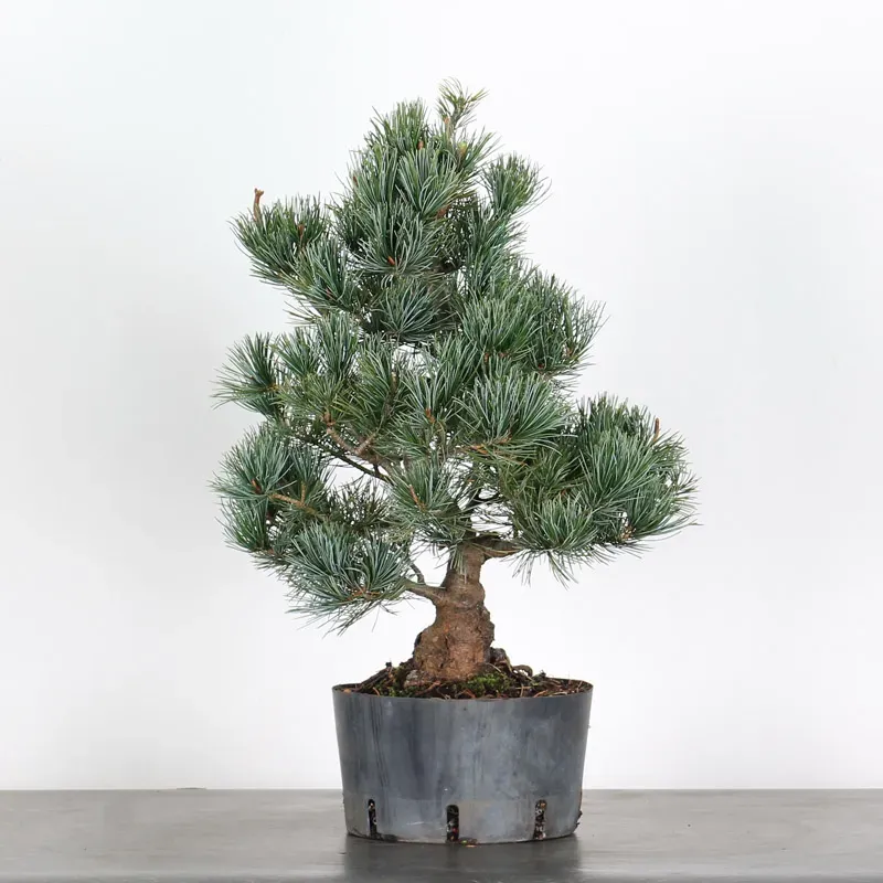 The Japanese white pine bonsai "pinus pentaphylla" is a popular tree because of its fine needles sheathed by five, green/blue colours, it can be shaped to present graceful movements of branches and an elegant trunk, it has rather a slow growth.