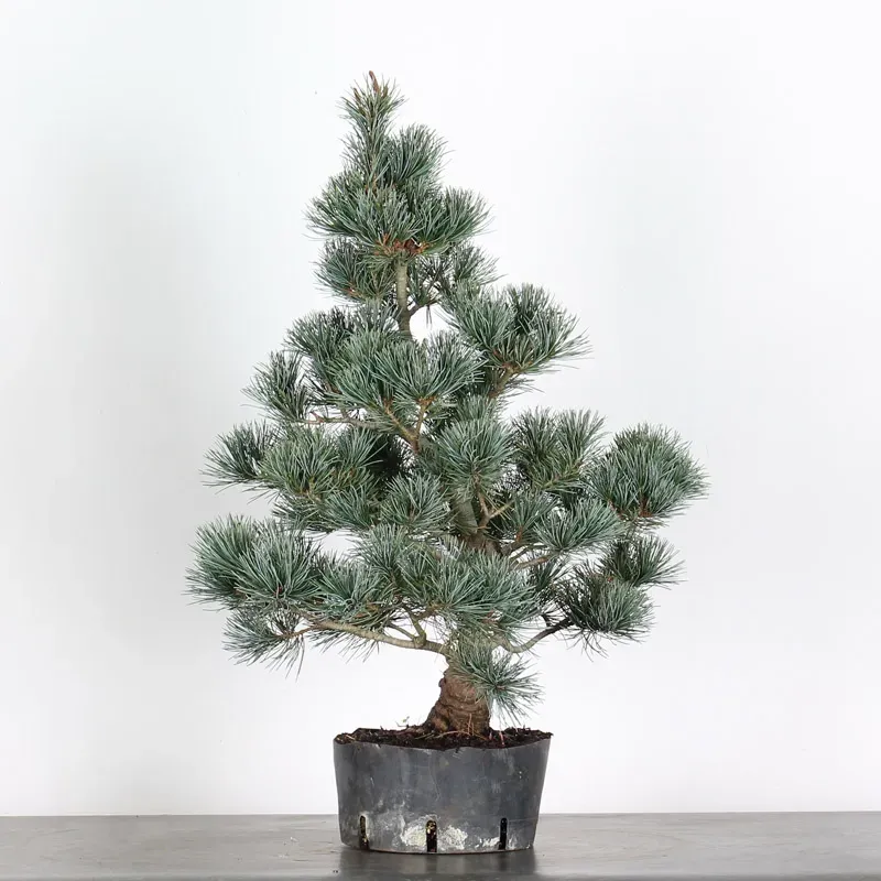 The Japanese white pine bonsai "pinus pentaphylla" is a popular tree because of its fine needles sheathed by five, green/blue colours, it can be shaped to present graceful movements of branches and an elegant trunk, it has rather a slow growth.