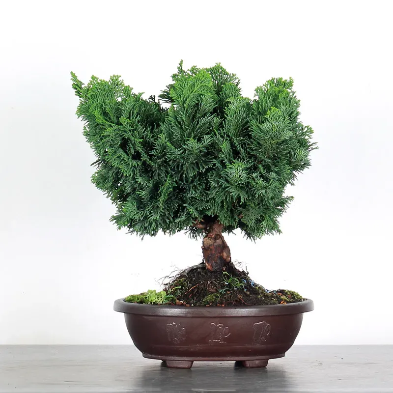 The Japanese cypress bonsai "Chamaecyparis obtusa Nana Gracilis" is a hardy conifer with dense, scaly foliage, highly prized for its distinctive shape and Japanese-inspired elegance. Its flexible wood lends itself well to wiring, making it an excellent bonsai tree. Evergreen, it retains its green foliage year-round and is resistant to cold.