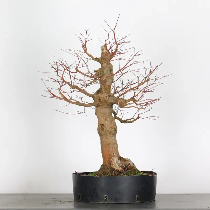 Prebonsai Japanese Maple "palmatum", a so-called "stock" variety, known for its vigor, resistance, and frequent use as a rootstock for more delicate cultivars. This ideal variety for amateurs wishing to begin bonsai work thanks to its robustness and steady growth.