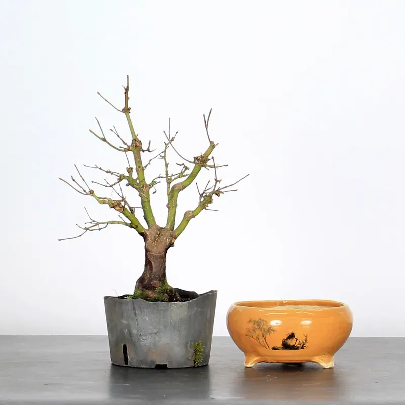 Prebonsai Japanese Maple "palmatum", a so-called "stock" variety, known for its vigor, resistance, and frequent use as a rootstock for more delicate cultivars. This ideal variety for amateurs wishing to begin bonsai work thanks to its robustness and steady growth.