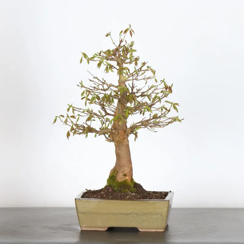 The Maple Buerger is a deciduous bonsai, appreciated for its small size and leaf coloration in spring and fall. Its vigour and rapid growth allow it to obtain large trunks that express power.