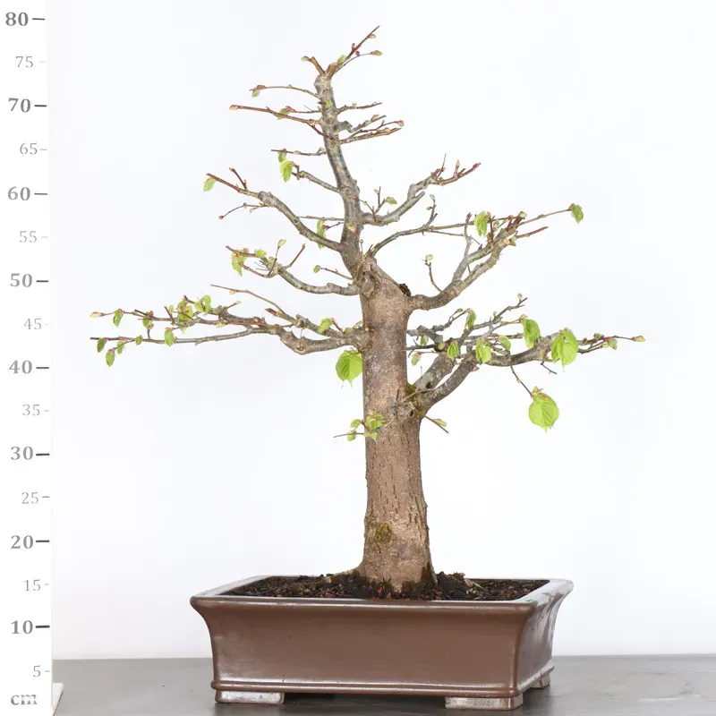 The linden bonsai (Tilia), also known as the herbal tea tree, is appreciated for its harmonious shape and dense green foliage. Renowned for its longevity, the linden tree is deeply rooted in European culture.