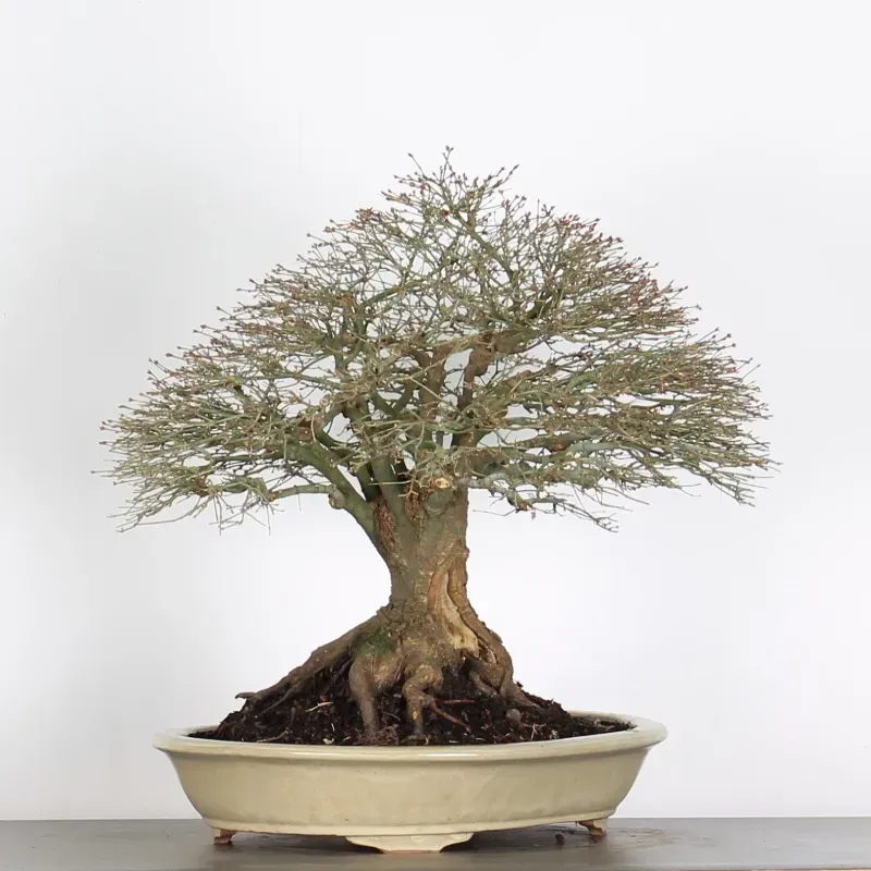 The Kiyohime Maple is certainly the variety that we appreciate the most among bonsai maples. Its natural ball-shaped habit and rapid densification make it a very rewarding bonsai as it immediately has the appearance of a dwarf tree in its pot.