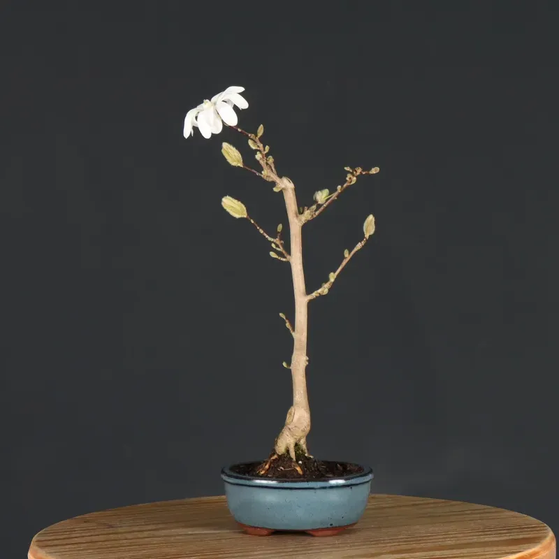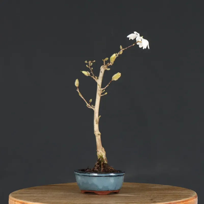 The bonsai star magnolia "Magnolia stellata" does not go unnoticed with its white star-shaped flowers. They appear in March/April before the leaves. This is one of the most floriferous magnolias. It is lightly scented.
