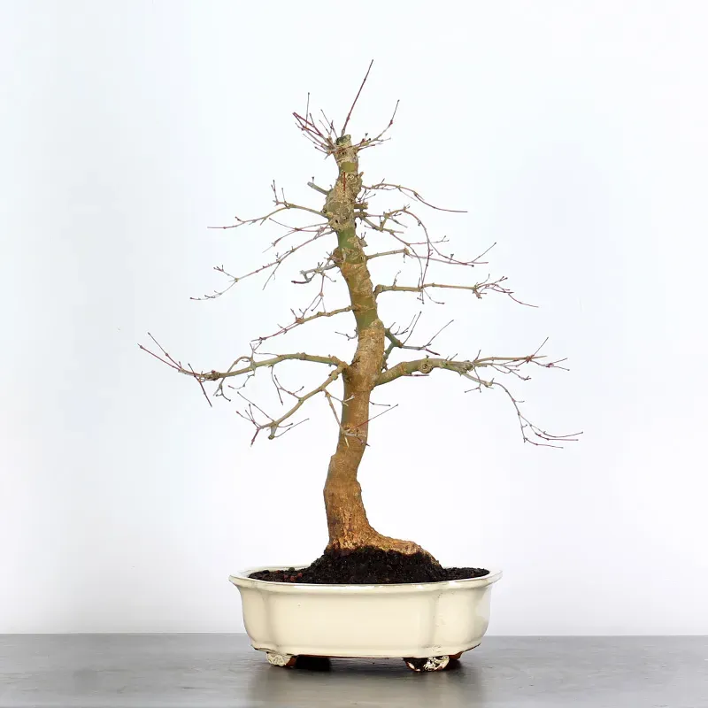 The Japanese red Maple "Deshojo" bonsai captivates with its spectacular evolution throughout the seasons. Its foliage begins a deep red in spring, gradually turning green in summer, and then displays superb shades of orange-red in autumn, offering a magnificent spectacle to behold all year round.