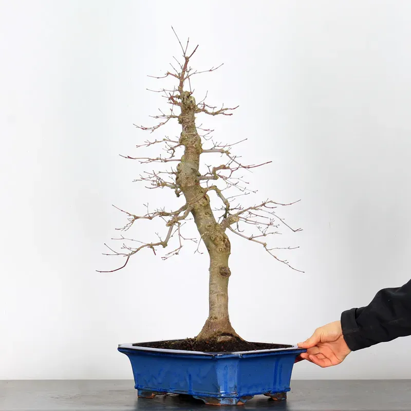 The Japanese red maple "Deshojo" bonsai captivates with its spectacular evolution throughout the seasons. Its foliage begins a deep red in spring, gradually turning green in summer, and then displays superb shades of orange-red in autumn, offering a magnificent spectacle to behold all year round.