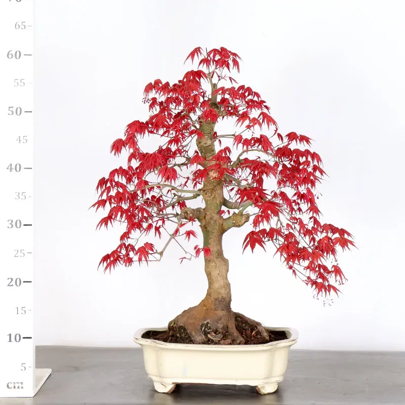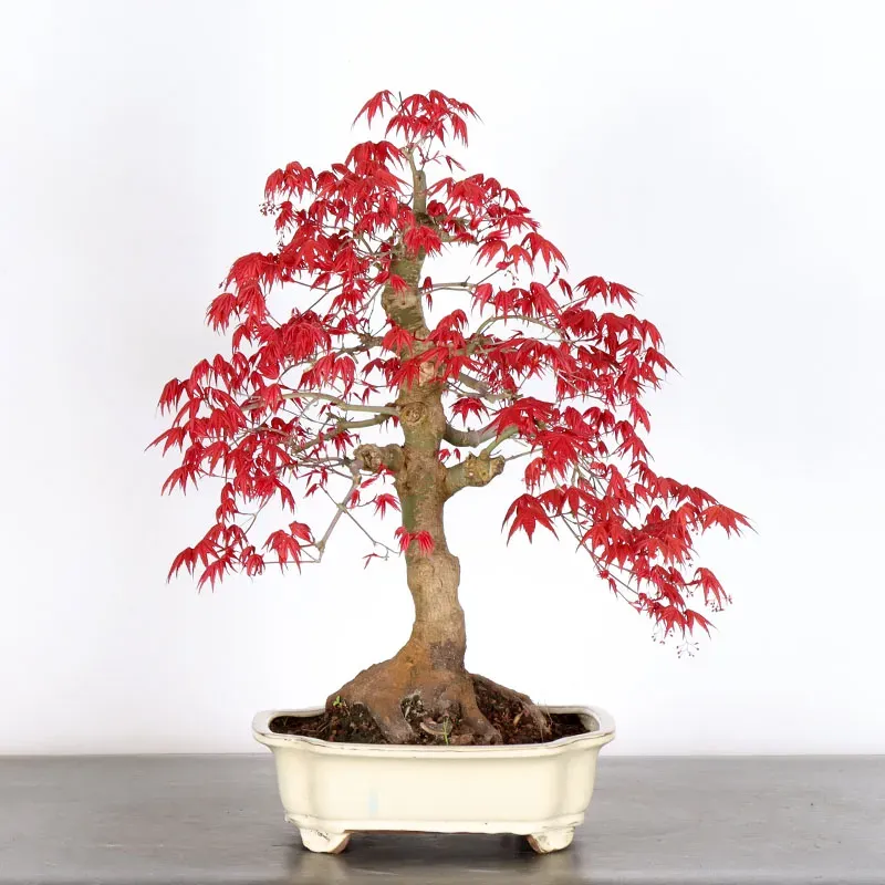 The Japanese red maple "Deshojo" captivates with its spectacular evolution throughout the seasons. Its foliage begins a deep red in spring, gradually turning green in summer, and then displays superb shades of orange-red in autumn, offering a magnificent spectacle to behold all year round.