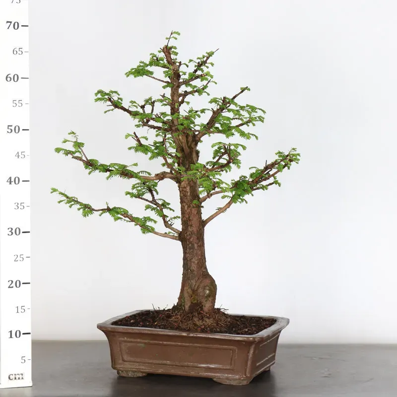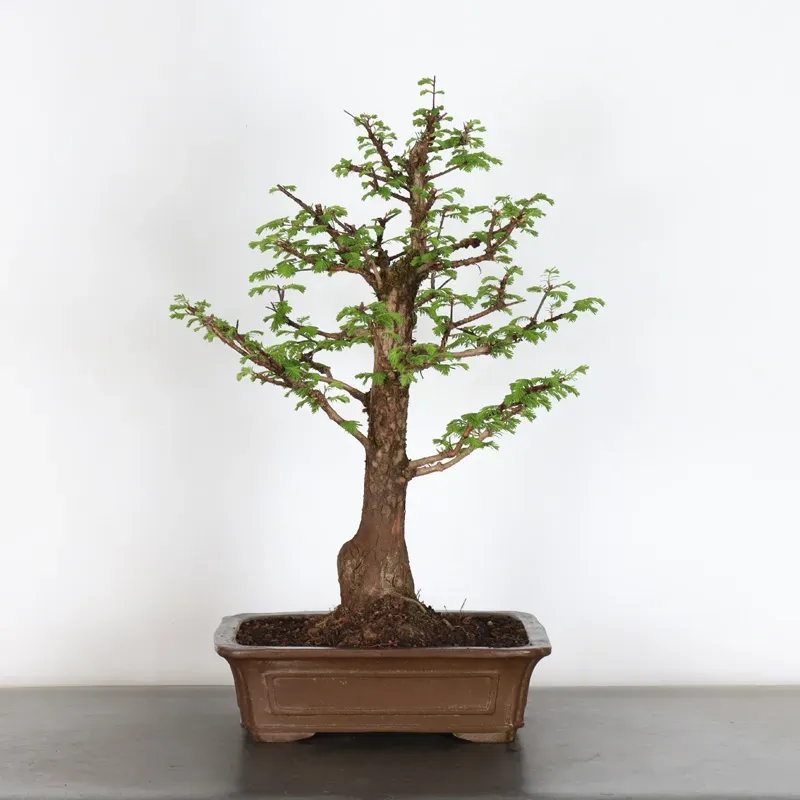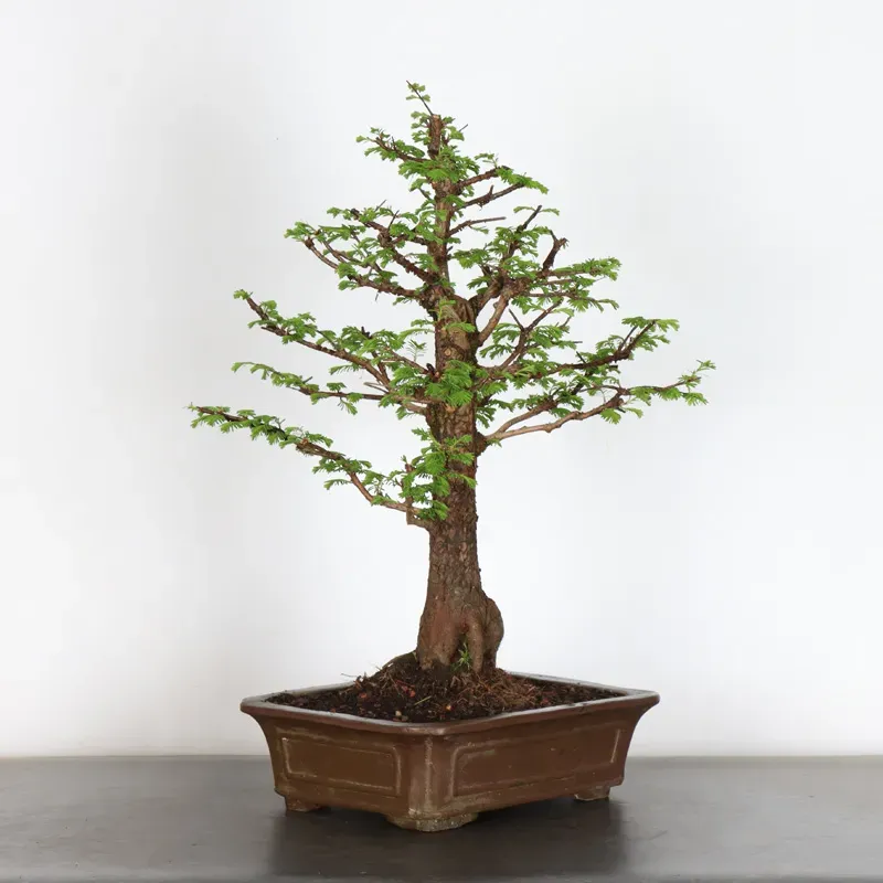The metasequoia , also known as the Japanese coast redwood or water fir, is a bonsai tree native to China that was once thought to be extinct. Its rediscovery in 1941 in the Sichuan region of China caused a sensation. The dawn redwood is known for its rapid growth, elegant conical shape, and light green, needle-like leaves that turn bronze in the fall before dropping.