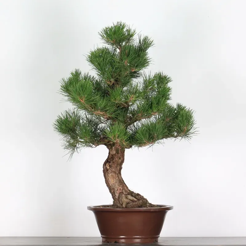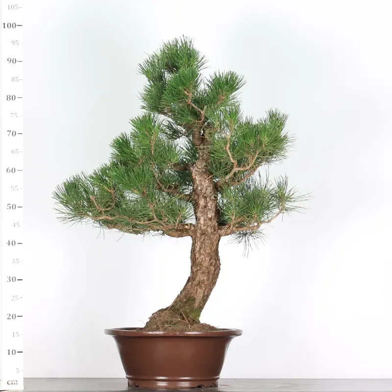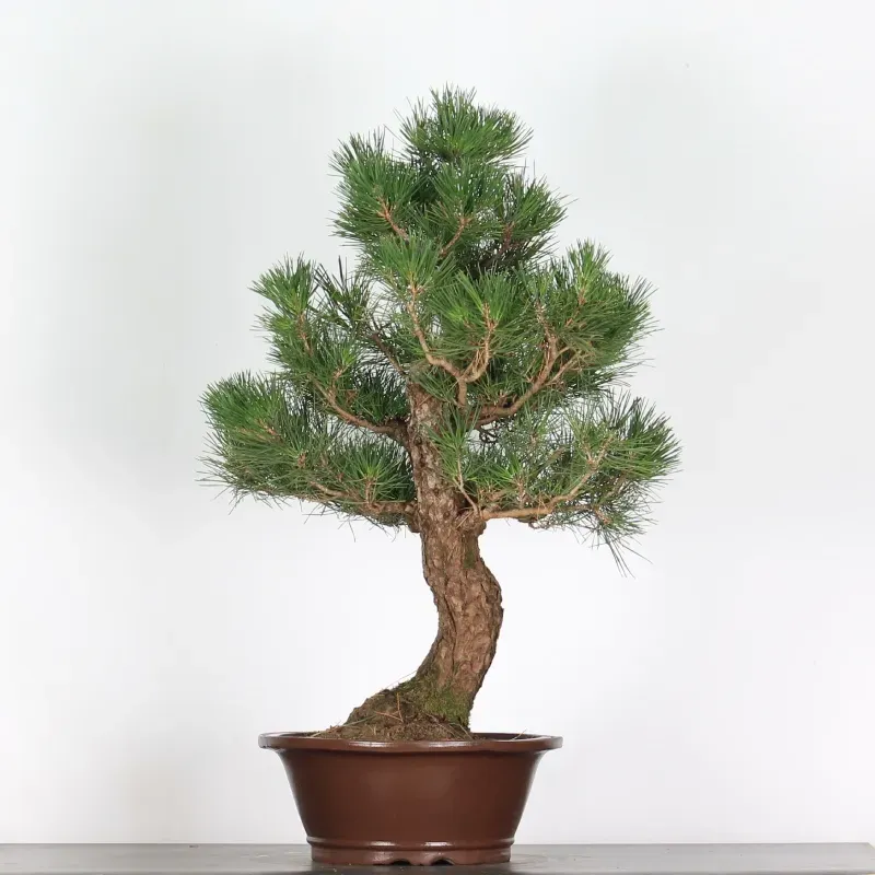 The Thunbergii Pine is a virile species par excellence: a straight, magnificent, powerful tree, firmly seated in its pot, rising toward the sky. The dark trunk, with its cracked bark, offers a striking contrast with the fairly light green needles, full of freshness and health.