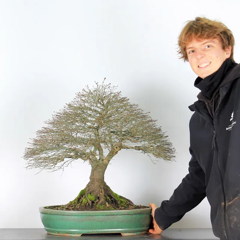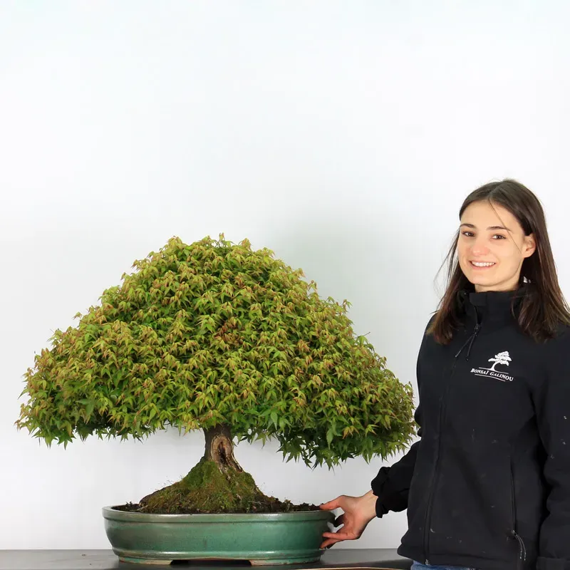 The Kiyohime Maple is undoubtedly the variety we appreciate most among bonsai maples. Its natural ball shape and rapid densification make it a very rewarding bonsai, as it immediately looks like a dwarf tree in its pot. It goes from orange/green in spring, all green in summer and red/yellow in autumn...
